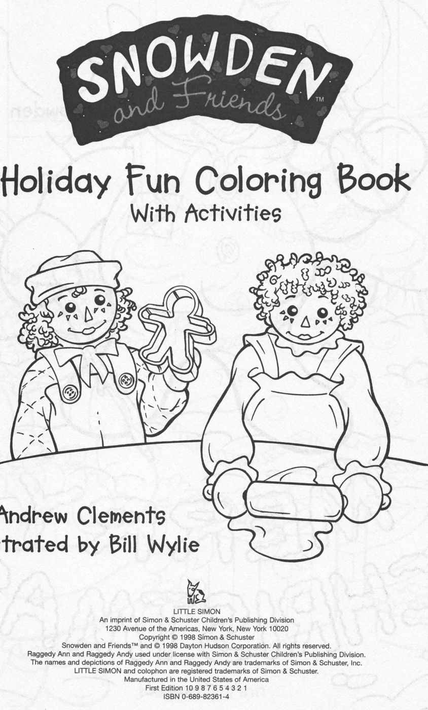 This Christmas coloring and activities book featuring Snowden, Raggedy Ann and Andy makes for hours of entertainment. So sharpen your pencil and join the fun!