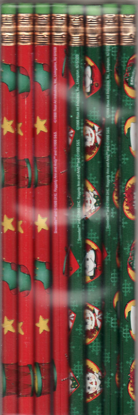 8 smooth No. 2 lead pencils (4 red & 4 green), real wood, green pencils have Raggedy Ann & Andy graphics